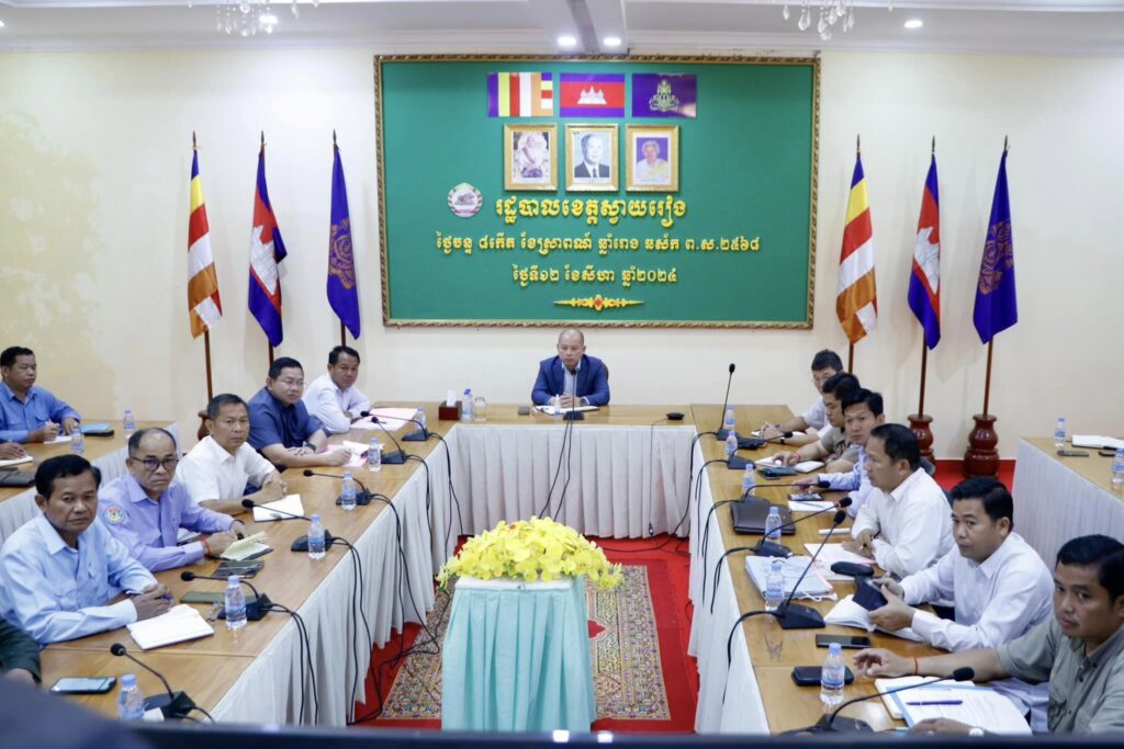 នៅព្រឹកថ្ងៃទី១២​ ខែសីហា​ ឆ្នាំ២០២៤នេះ​ ឯកឧត្តម​ ប៉េង​ ពោធិ៍សា​ អភិបាលខេត្តស្វាយរៀង​ បានអញ្ជេីញជាអធិបតីដឹកនាំកិច្ចប្រជុំស្តីពីវឌ្ឍនភាពការងារគណៈកម្មាធិការគ្រប់គ្រងច្រាំងទន្លេ​ ស្ទឹង​ ព្រែក​ អូរ​ ប្រឡាយ​ បឹងបួរ​ និងអាងទឹក​ ក្នុងភូមិសាស្ត្រ​ខេត្តស្វាយរៀង។