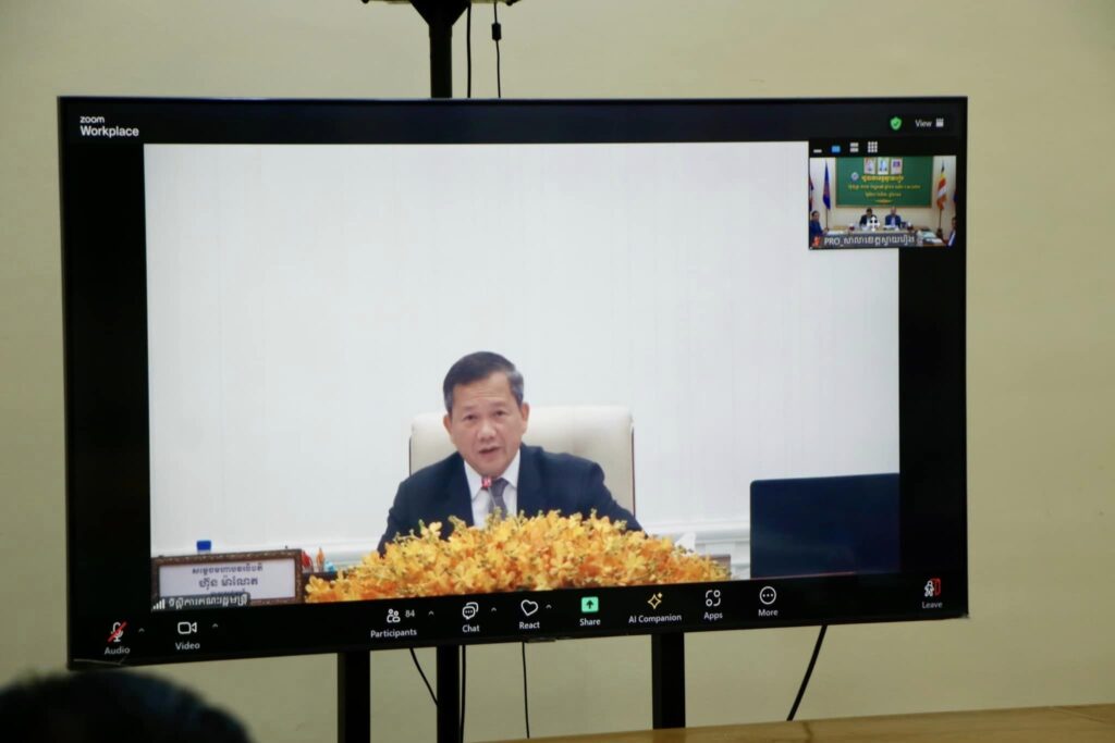 នាព្រឹកថ្ងៃសុក្រ៤រោច​ ខែស្រាពណ៍ ឆ្នាំរោង​ ឆស័ក​ ព.ស២៥៦៨​ ត្រូវនឹងថ្ងៃទី២៣​ ខែសីហា ឆ្នាំ២០២៤នេះ​ ឯកឧត្តម​ ម៉ែន​ វិបុល​ ប្រធានក្រុមប្រឹក្សាខេត្តស្វាយរៀង​ និងឯកឧត្តម​ ប៉េង​ ពោធិ៍សា​ ​ អភិបាលខេត្ត​ បានអញ្ជេីញចូលរួមកិច្ចប្រជុំពេញអង្គគណៈរដ្ឋមន្ត្រី​ ក្រោមអធិបតីភាពដ៏ខ្ពង់ខ្ពស់សម្តេចមហាបវរធិបតី​ ហ៊ុន​ ម៉ាណែត នាយករដ្ឋមន្ត្រីនៃព្រះរាជាណាចក្រកម្ពុជា​ តាមរយះប្រព័ន្ធវីដេអូ​ ZOOM។