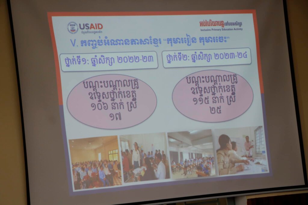 មានប្រសាសន៍ក្នុងឱកាសនោះ ឯកឧត្តមអភិបាលខេត្តបានថ្លែងនូវការគាំទ្រ និងអរគុណដល់ក្រុមការងារអនុវត្តគម្រោង មន្ទីរអប់រំយុវជននិងកីឡា ព្រមទាំងភាគីពាក់ព័ន្ធទាំងអស់ដែលបានយកចិត្តទុកដាក់ខិតខំជម្រុញ និងអនុវត្តបានល្អក្នុងការចូលរួមលេីកកម្ពស់ថ្នាលអប់រំដល់កុមារនៅតាមសាលាបឋមសិក្សាទាំងអស់នៅក្នុងមូលដ្ឋានខេត្តស្វាយរៀង រហូតបានចេញជាផ្លែផ្កាដូចបានឃេីញនៅក្នុងបទបង្ហាញនាពេលនេះ។