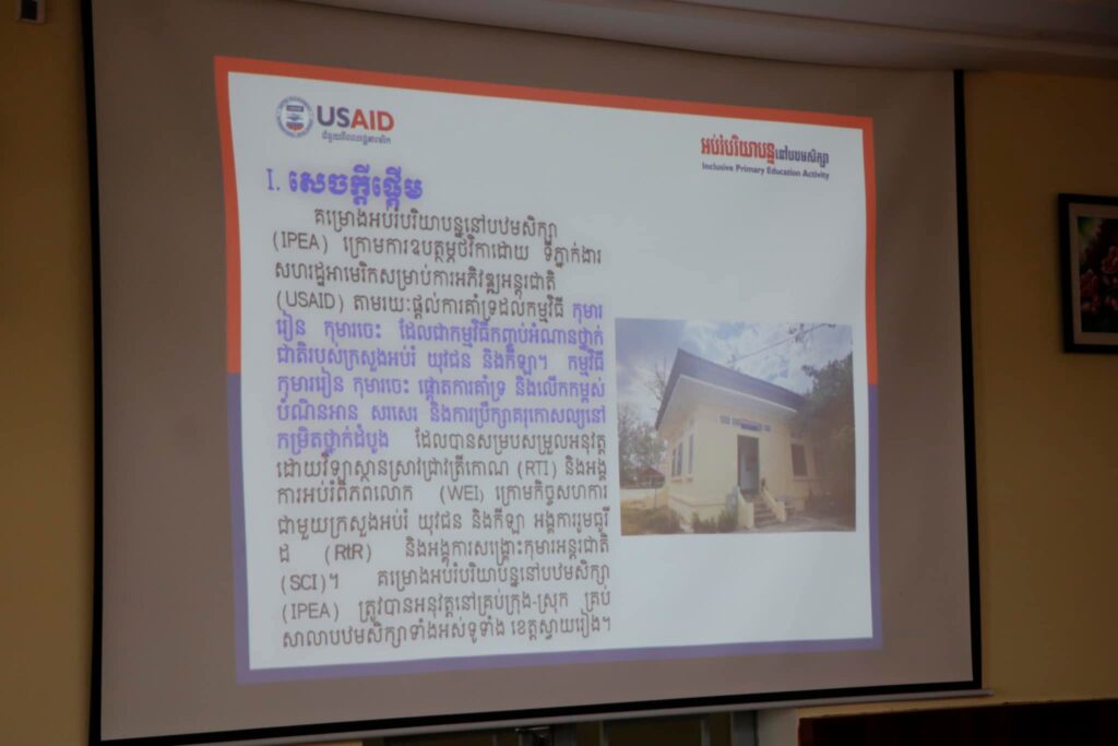 នៅថ្ងៃទី០៣ ខែកញ្ញា ឆ្នាំ២០២៤នេះ ឯកឧត្តម ប៉េង ពោធិ៍សា អភិបាលខេត្តស្វាយរៀង បានអនុញ្ញាតឲ្យក្រុមការងារអនុវត្តគម្រោងអប់រំបរិយាប័ន្ន "កុមាររៀន កុមារចេះ" ចូលជួបសម្តែងការគួរសម និងចែករំលែកនូវលទ្ធផលដែលបានអនុវត្តកន្លងមក។