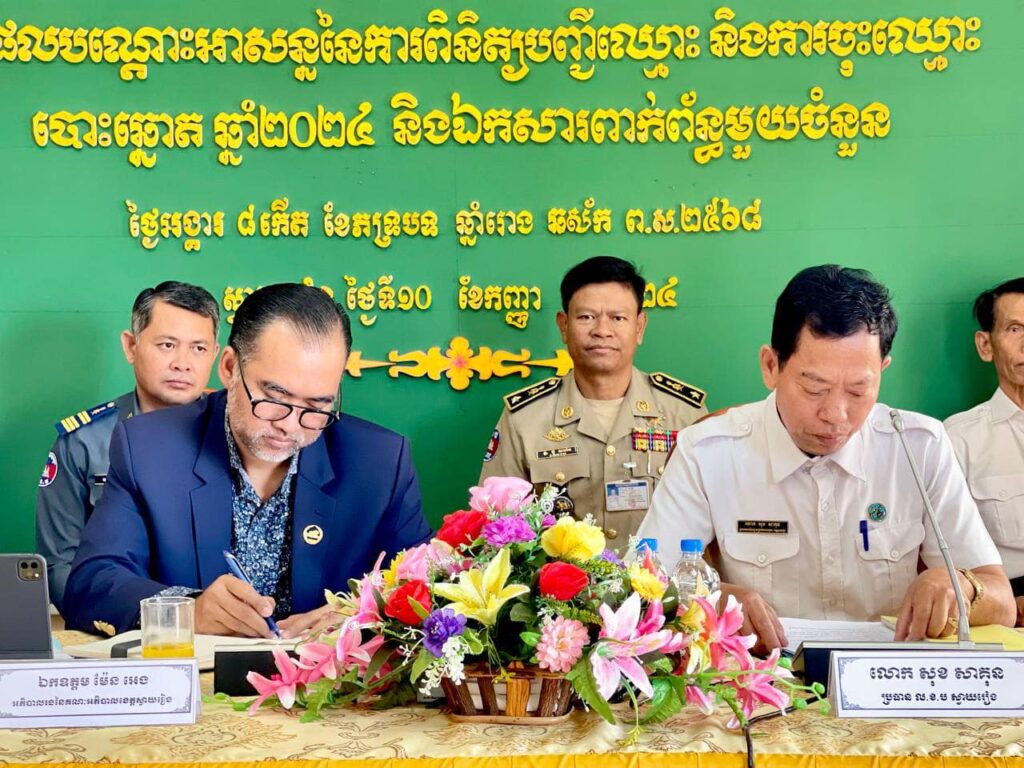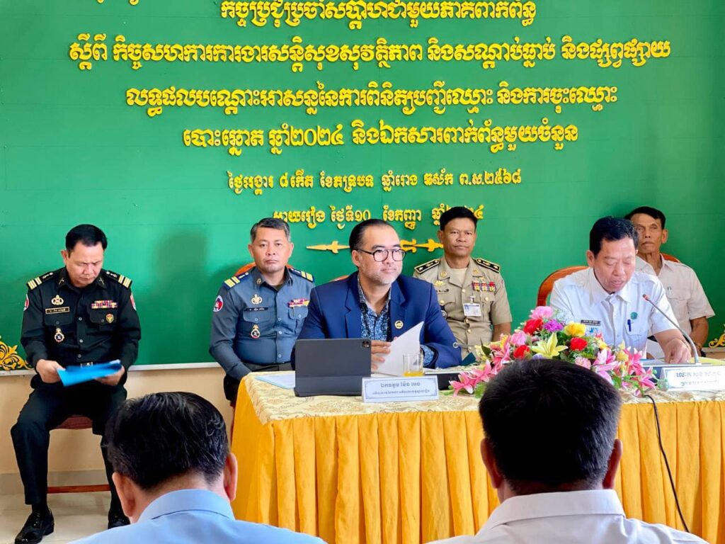 នៅថ្ងៃអង្គារ៨ កើត ខែភទ្របទ ឆ្នាំរោងឆស័ក ពុទ្ធសករាជ ២៥៦៨ ត្រូវនឹងថ្ងៃទី១០ ខែកញ្ញា ឆ្នាំ២០២៤ ឯកឧត្តម ម៉ែន អេង អភិបាលរងខេត្តស្វាយរៀង តំណាងឯកឧត្តម ប៉េង ពោធិ៍សា អភិបាលខេត្ត បានអញ្ជេីញក្នុងប្រជុំជាមួយភាគីពាក់ព័ន្ធស្តីពីកិច្ចសហការការងារសន្តិសុខសុវត្ថិភាព និងសណ្តាប់ធ្នាប់ និងផ្សព្វផ្សាយ លទ្ធផលបណ្តោះអាសន្ន នៃការពិនិត្យបញ្ជីឈ្មោះ និងការចុះឈ្មោះបោះឆ្នោត ឆ្នាំ២០២៤ និងឯកសារពាក់ព័ន្ធមួយចំនួន នៅសាលប្រជុំលេខាធិការដ្ឋានរៀបចំការបោះឆ្នោតខេត្តស្វាយរៀង។