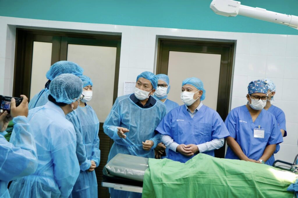 នាព្រឹកថ្ងៃទី៣០ ខែវិច្ឆិកា ឆ្នាំ២០២៤នេះ ឯកឧត្តម ប៉េង ពោធិ៍សា អភិបាលខេត្តស្វាយរៀង និងលោកជំទាវព្រមទាំងសហការីបានអញ្ជេីញចុះសួរសុខទុក្ខអ្នកជំងឺ និងសំណេះសំណាលជាមួយក្រុមការងារគ្រូពេទ្យស្ម័គ្រចិត្តនៃអង្គការស្នាមញញឹមកម្ពុជា ដោយសហការជាមួយមន្ទីរពេទ្យខេត្តស្វាយរៀងផ្តល់ការវះកាត់ដោយឥតគិតថ្លៃជូនអ្នកជំងឺឆែបមាត់ ក្រអូមមាត់ឆែប និងពិការភាពមុខមាត់ផ្សេងៗ ដែលបានធ្វេីការវះកាត់ព្យាបាលនៅមន្ទីរពេទ្យខេត្តចាប់ពីថ្ងៃទី២៩ ខែវិច្ឆិកា ដល់ថ្ងៃទី១ ខែធ្នូ ឆ្នាំ២០២៤នេះ។