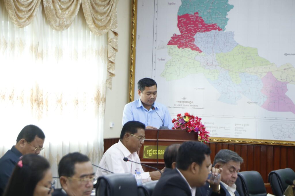 កិច្ចប្រជុំសាមញ្ញលើកទី៦ ឆ្នាំទី១ អាណត្តិទី៤ របស់ក្រុមប្រឹក្សាខេត្តស្វាយរៀងនាព្រឹកថ្ងៃពុធ៤កេីត ខែមិគសិរ ឆ្នាំរោង ឆស័ក ព.ស.២៥៦៨ ត្រូវនឹងថ្ងៃទី០៤ ខែវិច្ឆិកា ឆ្នាំ២០២៤នេះ នៅសាលប្រជុំនន្ទីរ អគារ ខ សាលាខេត្ត មានរៀបចំកិច្ចប្រជុំសាមញ្ញ លើកទី៦ ឆ្នាំទី១ អាណត្តិទី៤ របស់ក្រុមប្រឹក្សាខេត្ត ក្រោមអធិបតីភាពឯកឧត្តម ម៉ែន វិបុល ប្រធានក្រុមប្រឹក្សាខេត្តស្វាយរៀង និងមានការអញ្ជើញចូលរួមពីឯកឧត្តម ប៉េង ពោធិ៍សា អភិបាល នៃគណៈអភិបាលខេត្ត ឯកឧត្ដម លោកជំទាវសមាជិក សមាជិកាក្រុមប្រឹក្សាខេត្ត អភិបាលរងខេត្ត លោក លោកស្រី នាយក នាយករងរដ្ឋបាលសាលាខេត្ត លោក លោកស្រីប្រធានមន្ទីរ/អង្គភាពនានាក្នុងខេត្ត តំណាងកងកម្លាំងទាំង៣ លោក លោកស្រីនាយក នាយករងទីចាត់ការ/អង្គភាព និងប្រធានការិយាល័យចំណុះសាលាខេត្ត ។ របៀបវារៈនៃកិច្ចប្រជុំនេះមាន ៖