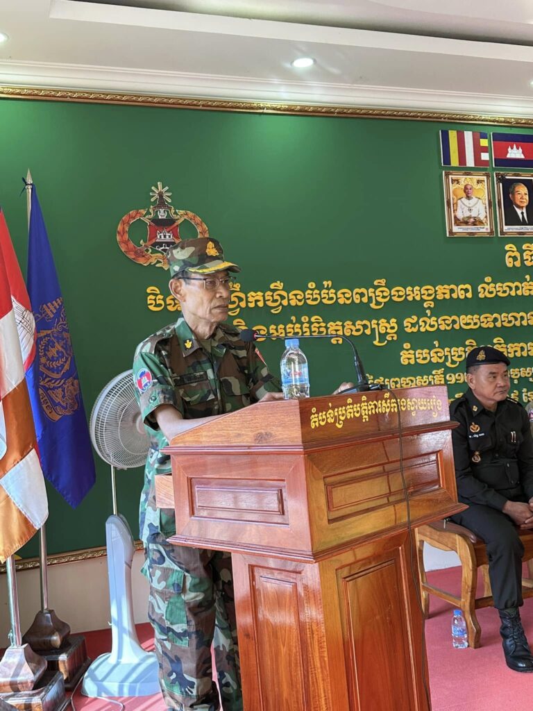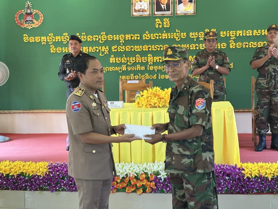 ឯកឧត្តម អភិបាលរង បានមានមតិសំណេះសំណាល និងសាកសួរសុខទុក្ខដល់កងយោធពលខេមរភូមិន្ទទាំងអស់ ហេីយបាននាំយកថវិកាចំនួន២លានរៀល ដែលជាការឧបត្ថម្ភរបស់ ឯកឧត្តម ប៉េង ពោធិ៍សា អភិបាលខេត្ត ប្រគល់ជូនដល់មេបញ្ជាការស្តីទី សម្រាប់កម្មវិធីបិទវគ្គហ្វឹកហ្វឺននេះផងដែរ ។