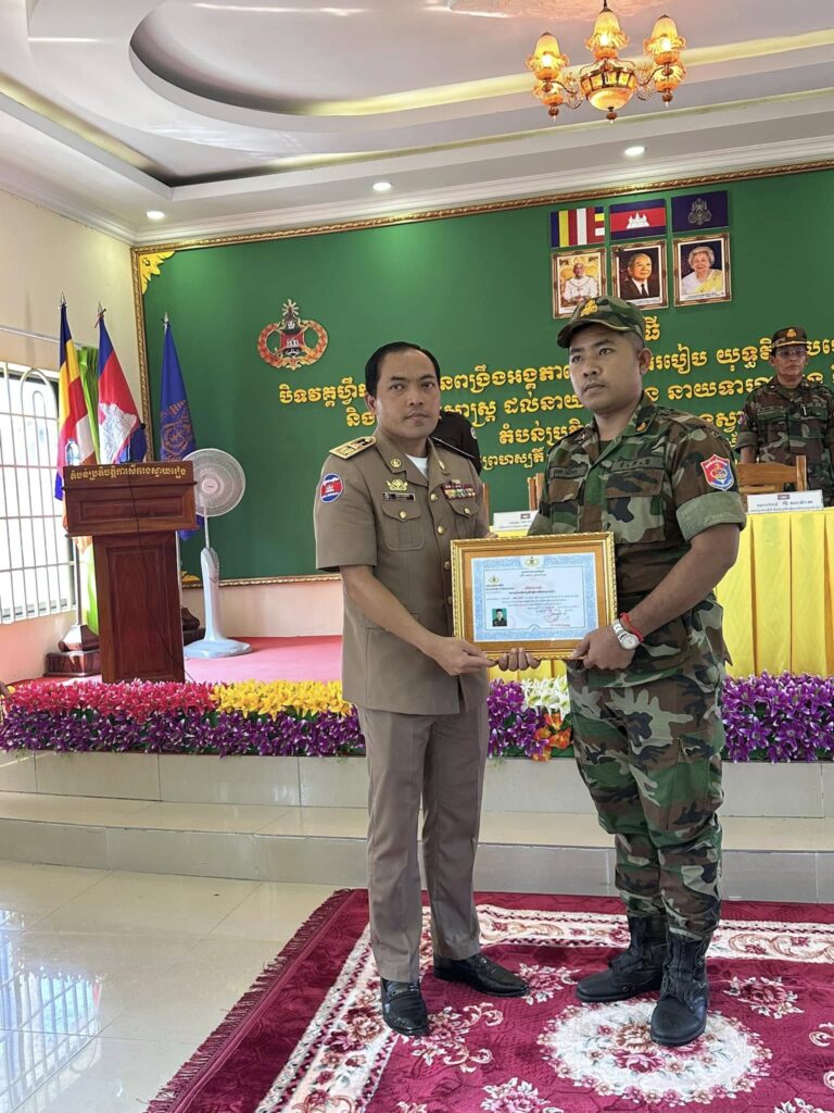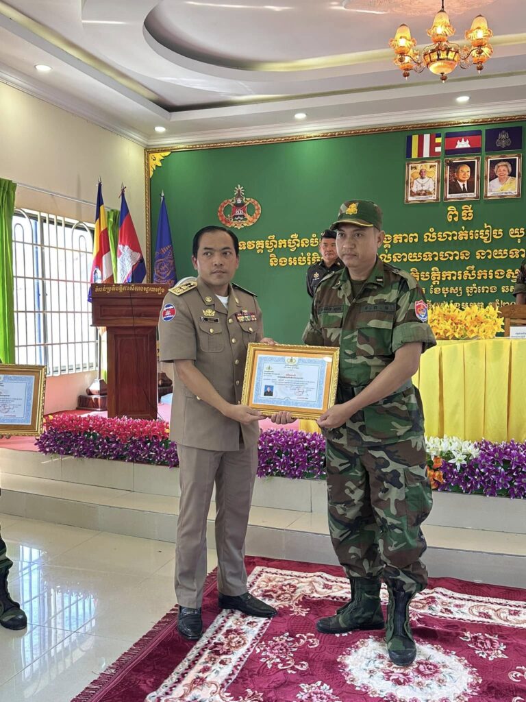 ពិធីបិទវគ្គហ្វឹកហ្វឺនបំប៉នពង្រឹងអង្គភាព លំហាត់របៀប យុទ្ធវិធី បច្ចេកទេស អាវុធថ្មេីរជេីង និងអប់រំចិត្តសាស្ត្រ ដល់នាយទាហាន នាយទាហានរង និងពលទាហានតំបន់ប្រតិបត្តិការសឹករងស្វាយរៀង