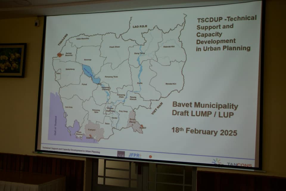 នាព្រឹកថ្ងៃទី១៨​ ខែកម្ភៈ​ ឆ្នាំ២០២៥នេះ​ ឯកឧត្តម​ ប៉េង ពោធិ៍សា អភិបាលខេត្តស្វាយរៀង និងឯកឧត្តម បេងហុង សុជាតិខេមរ៉ូ អគ្គនាយក អគ្គនាយកដ្ឋានរៀបចំដែនដី និងនគរូបនីយកម្ម នៃក្រសួងរៀបចំដែនដី នគរូបនីយកម្ម និងសំណង់ និងជាអគ្គ-លេខាធិការ នៃអគ្គលេខាធិការដ្ឋាន គ.ដ.ន.ជ បានដឹកនាំកិច្ចប្រជុំពិគ្រោះយោបល់ ដេីម្បីបញ្ចប់លេីការរៀបចំ"សេចក្តីព្រាងប្លង់គោលប្រេីប្រាស់ដី​ និងផែនការប្រេីប្រាស់ដីក្រុងបាវិត"។
