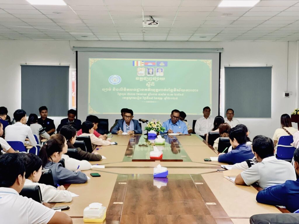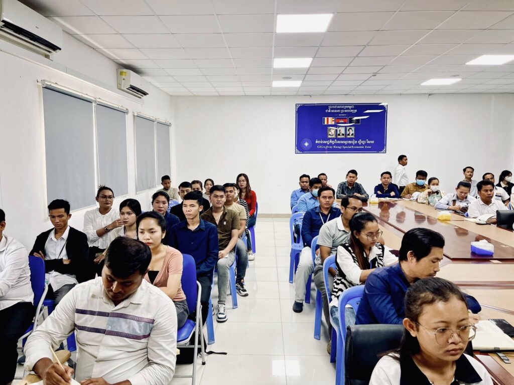 កិច្ចប្រជុំផ្សព្វផ្សាយច្បាប់ និងលិខិតបទដ្ឋានគតិយុត្តិក្នុងវិស័យការងារ និងបណ្ដុះបណ្ដាលវិជ្ជាជីវៈនៅតំបន់សេដ្ឋកិច្ចពិសេស ហ្គីហ្គារីសស៍ខេត្តស្វាយរៀង