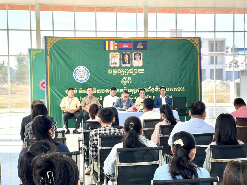 កិច្ចប្រជុំផ្សព្វផ្សាយច្បាប់ និងលិខិតបទដ្ឋានគតិយុត្តិក្នុងវិស័យការងារ និងបណ្ដុះបណ្ដាលវិជ្ជាជីវៈនៅតំបន់សេដ្ឋកិច្ចពិសេស មេនហាតធេន ខេត្តស្វាយរៀង