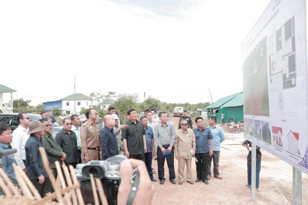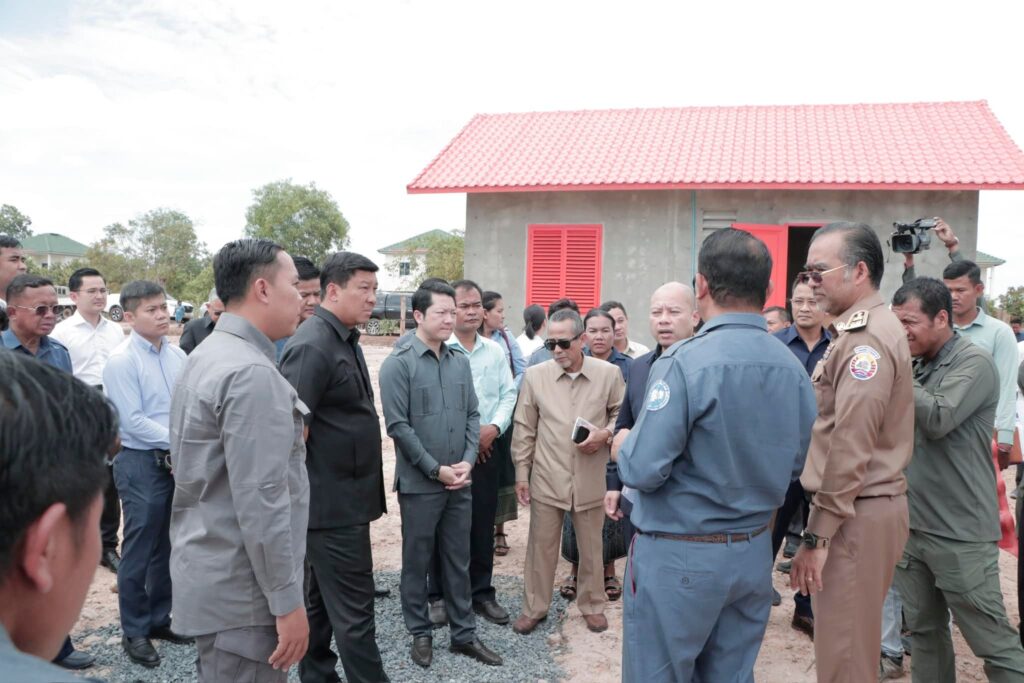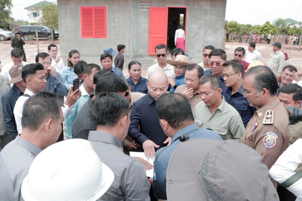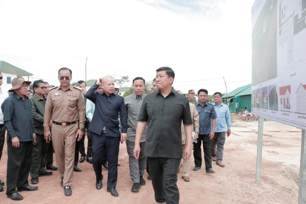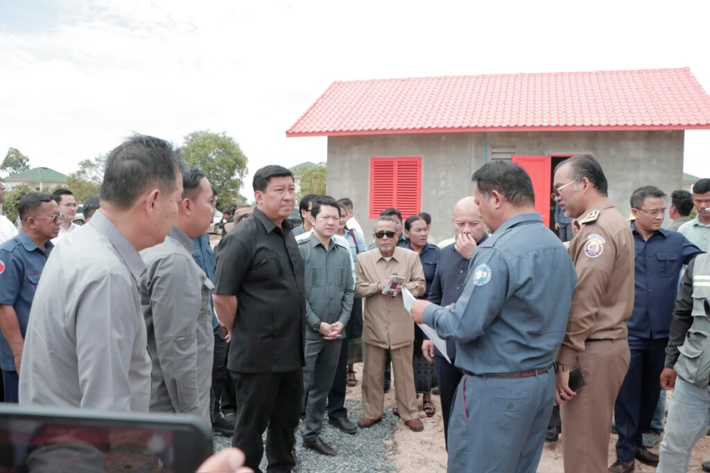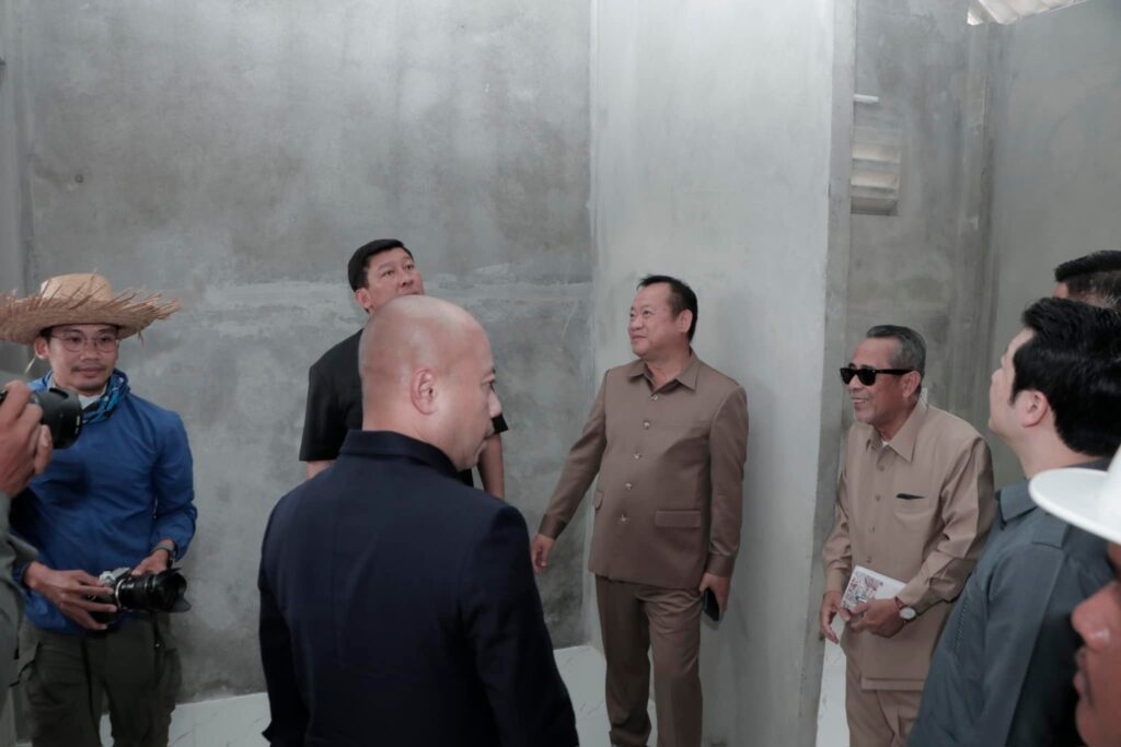 បន្ទប់ពីចប់កម្មវិធីប្រកាសខេត្តស្វាយរៀង បញ្ចប់ការវាស់វែងដីធ្លីមានលក្ខណៈជាប្រព័ន្ធ និងពិធីចែកបណ្ណកម្មសិទ្ធដីធ្លីនៅស្រុករំដួល​ នៅថ្ងៃទី២៤​ ខែកុម្ភៈឆ្នាំ២០២៥នេះ​ ឯកឧត្តម​ ប៉េង​ ពោធិ៍សា​ អភិបាលខេត្តស្វាយរៀង​ បានអញ្ជេីញអមដំណេីរឯកឧត្តម សាយ សំអាល់ ឧបនាយករដ្ឋមន្ត្រី រដ្ឋមន្ត្រីក្រសួងរៀបចំដែនដីនគររូបនីយកម្ម និងសំណង់​ ព្រមទាំងគណៈប្រតិភូ ចុះត្រួតពិនិត្យវឌ្ឍនភាពនៃការសាងសង់ផ្ទះជំហាន៣​ចំនួន៩០ខ្នង​ ជូនដល់គ្រួសារអតីតយុទ្ធជននៅចំណុចផ្ទះ៤០០ខ្នងស្ថិតនៅក្នុងភូមិជីកដី ឃុំអណ្ដូងត្របែក។