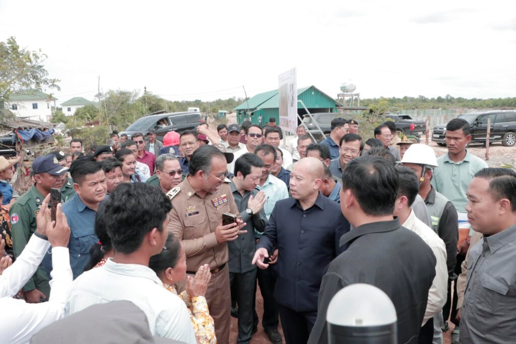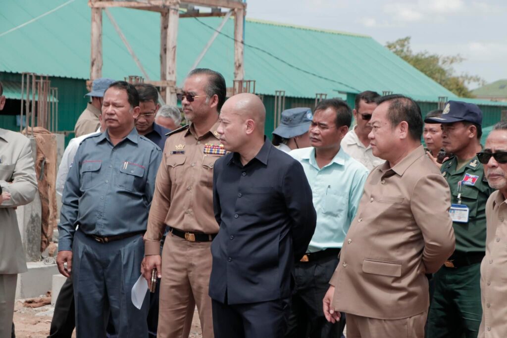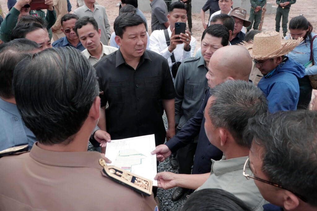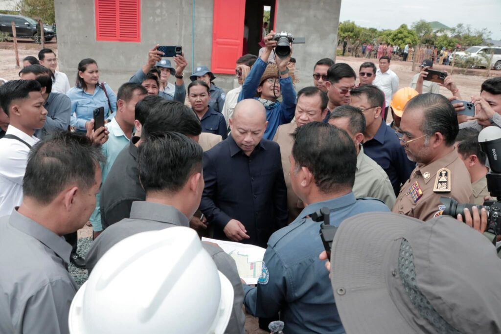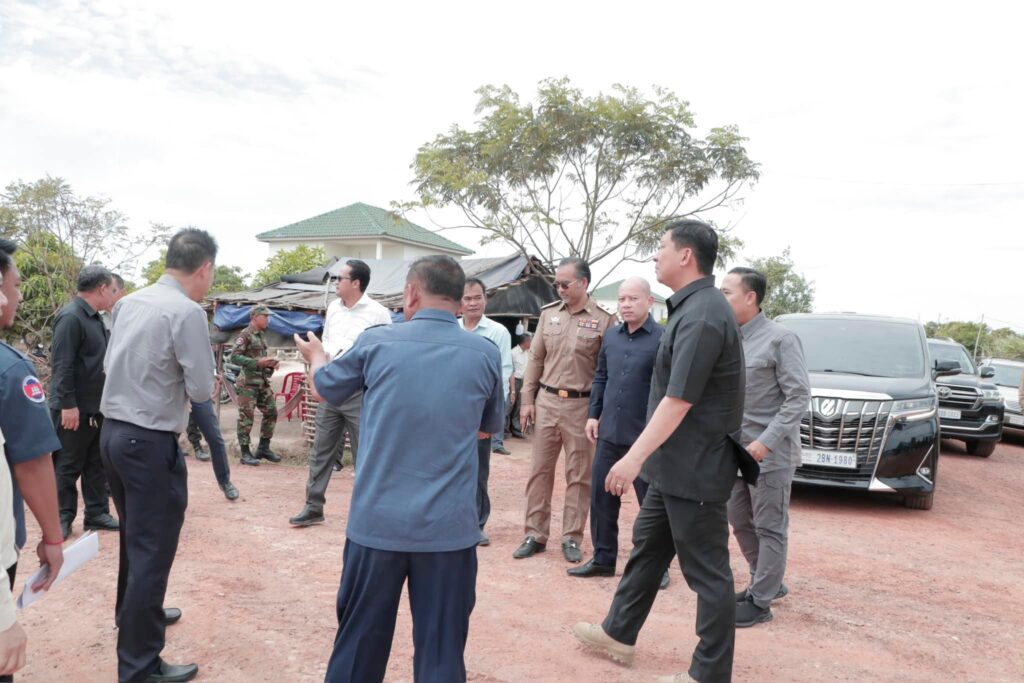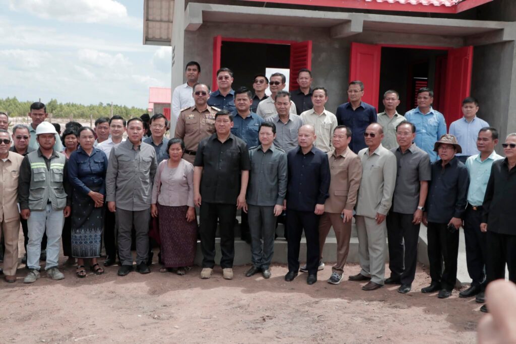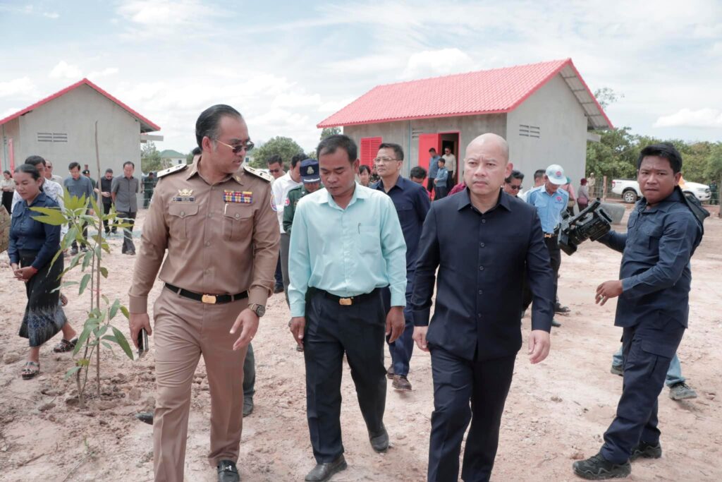 បន្ទប់ពីចប់កម្មវិធីប្រកាសខេត្តស្វាយរៀង បញ្ចប់ការវាស់វែងដីធ្លីមានលក្ខណៈជាប្រព័ន្ធ និងពិធីចែកបណ្ណកម្មសិទ្ធដីធ្លីនៅស្រុករំដួល​ នៅថ្ងៃទី២៤​ ខែកុម្ភៈឆ្នាំ២០២៥នេះ​ ឯកឧត្តម​ ប៉េង​ ពោធិ៍សា​ អភិបាលខេត្តស្វាយរៀង​ បានអញ្ជេីញអមដំណេីរឯកឧត្តម សាយ សំអាល់ ឧបនាយករដ្ឋមន្ត្រី រដ្ឋមន្ត្រីក្រសួងរៀបចំដែនដីនគររូបនីយកម្ម និងសំណង់​ ព្រមទាំងគណៈប្រតិភូ ចុះត្រួតពិនិត្យវឌ្ឍនភាពនៃការសាងសង់ផ្ទះជំហាន៣​ចំនួន៩០ខ្នង​ ជូនដល់គ្រួសារអតីតយុទ្ធជននៅចំណុចផ្ទះ៤០០ខ្នងស្ថិតនៅក្នុងភូមិជីកដី ឃុំអណ្ដូងត្របែក។
