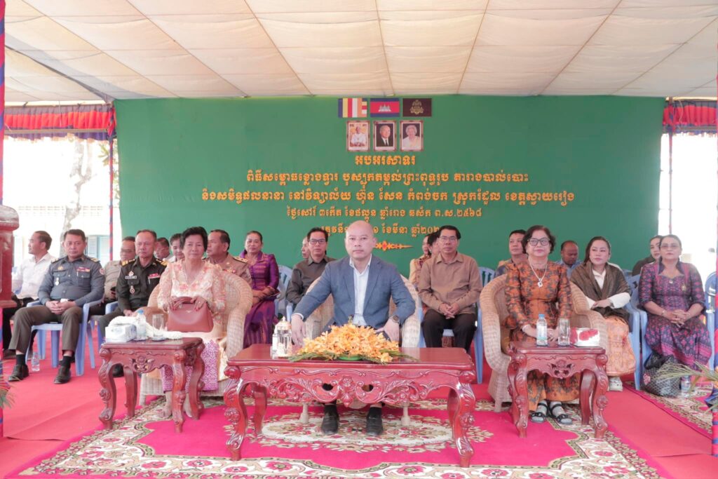 នៅព្រឹកថ្ងៃសៅរ​ ៣កេីត​ ខែផល្គុន​ ឆ្នាំរោង​ ឆស័ក​ ព.ស​ ២៥៦៨​ ត្រូវនឹងថ្ងៃទី១​ ខែមីនា​ ឆ្នាំ២០២៥នេះ​ ឯកឧត្តម​ ប៉េង​ ពោធិ៍សា​ អភិបាលខេត្តស្វាយរៀង​ បា​នអញ្ជេីញជាអធិបតីក្នុងពិធីសម្ពោធខ្លោងទ្វារ បុស្បុកតម្កល់ព្រះពុទ្ធរូប តារាងបាល់បោះ និងសមិទ្ធផលនានា នៅក្នុងវិទ្យាល័យ ហ៊ុន សែន កំពង់ចក​ ស្ថិតនៅឃុំកំពង់ចក ស្រុករំដួល។