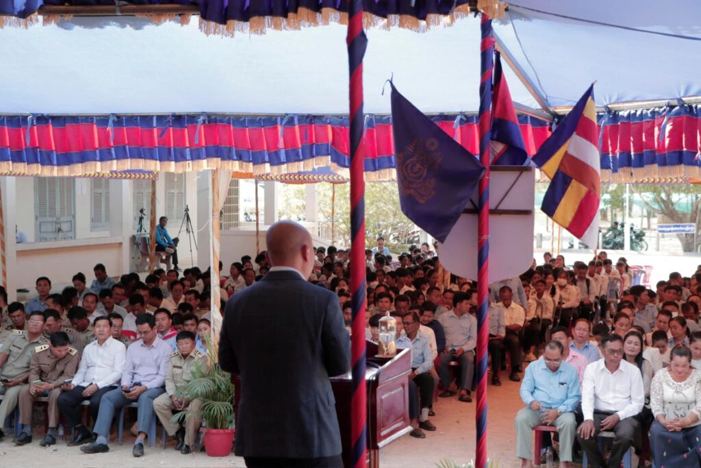 ឯកឧត្តមអភិបាលខេត្តមានប្រសាសន៍ថា​ ក្នុងនាមអាជ្ញាធរខេត្ត ពិតជាមានការសប្បាយរីករាយដែល បានឃើញព្រះតេជគុណ ឯកឧត្តម លោកជំទាវ អស់លោក លោកស្រីជាសប្បុរសជនមកពី គ្រប់ភាគីពាក់ព័ន្ធ បានផ្តល់នូវការជួយឧបត្ថម្ភលើវិស័យអប់រំ ដែលជាវិស័យស្នូលសម្រាប់ ការអភិវឌ្ឍប្រទេសជាតិរបស់យើង​ និងសូមថ្លែងអំណរគុណយ៉ាង ជ្រាលជ្រៅចំពោះចំណងដៃដ៏ថ្លៃថ្លានាថ្ងៃនេះ សម្រាប់ជាប្រយោជន៍រួមរបស់លោកគ្រូ អ្នកគ្រូ និងក្មួយៗសិស្សានុសិស្សនៅក្នុងវិទ្យាល័យហ៊ុន សែន កំពង់ចក យើង​ ហេីយសមិទ្ធផលទាំងនេះ​ ជាហេដ្ឋារចនាសម្ព័ន្ធដ៏មានសារៈសំខាន់គាំទ្របន្ថែមពីលើអគារសិក្សា។