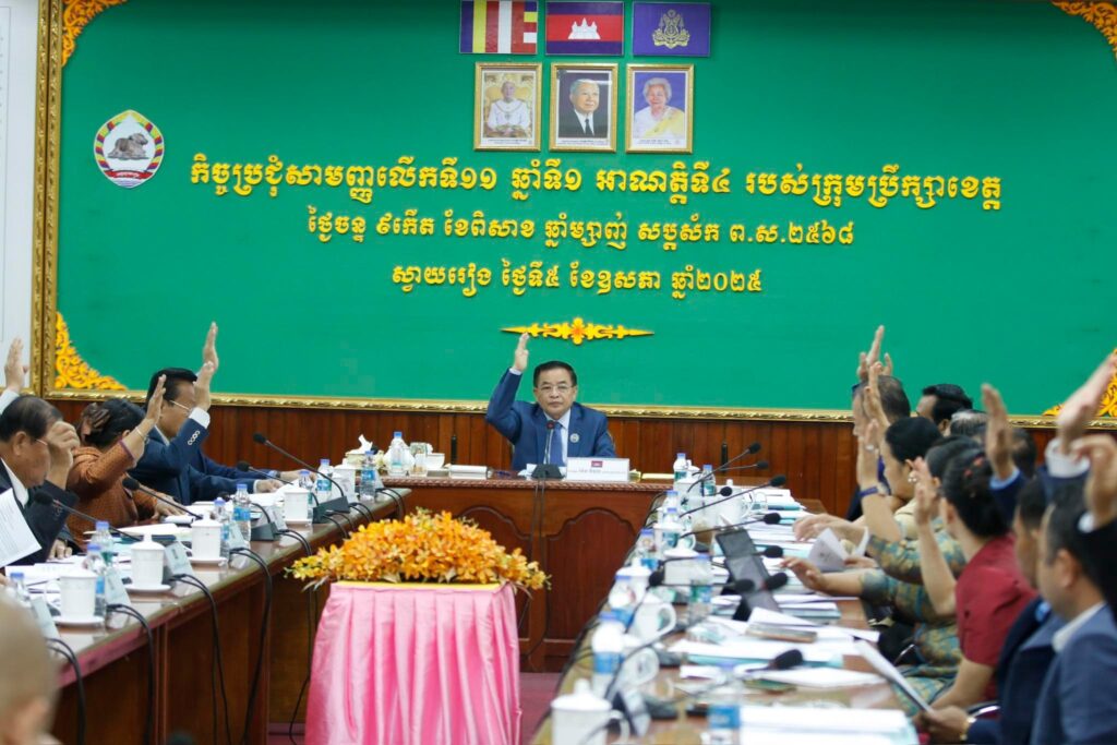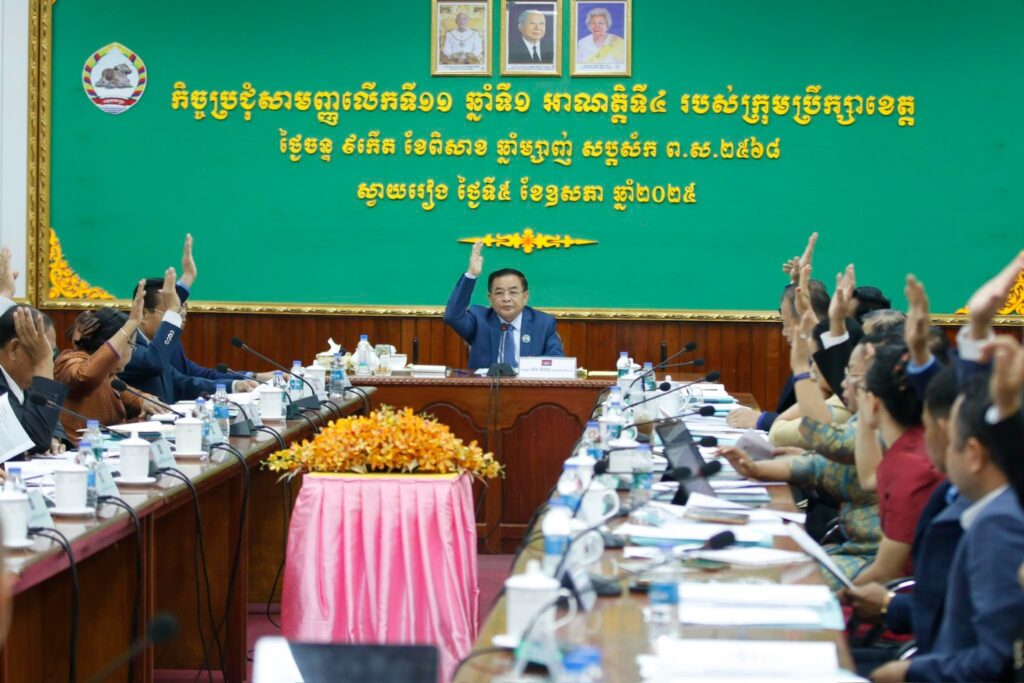 នៅព្រឹកថ្ងៃចន្ទ៩កើត ខែពិសាខ ឆ្នាំម្សាញ់​ សប្តស័ក ព.ស.២៥៦៨ ត្រូវនឹងថ្ងៃទី០៥ ខែឧសភា ឆ្នាំ២០២៥នេះ នៅសាលប្រជុំនន្ទីរ អគារ ខ សាលាខេត្ត មានរៀបចំកិច្ចប្រជុំសាមញ្ញលើកទី១១ ឆ្នាំទី១ អាណត្តិទី៤ របស់ក្រុមប្រឹក្សាខេត្តស្វាយរៀង របស់ក្រុមប្រឹក្សាខេត្ត ក្រោមអធិបតីភាពឯកឧត្តម ម៉ែន វិបុល ប្រធានក្រុមប្រឹក្សាខេត្តស្វាយរៀង និងមានការអញ្ជើញចូលរួមពីឯកឧត្តម ប៉េង ពោធិ៍សា អភិបាល នៃគណៈអភិបាលខេត្ត ឯកឧត្ដម លោកជំទាវសមាជិក សមាជិកាក្រុមប្រឹក្សាខេត្ត អភិបាលរងខេត្ត លោកនាយក នាយករងរដ្ឋបាលសាលាខេត្ត លោក លោកស្រីប្រធានមន្ទីរ/អង្គភាពនានាក្នុងខេត្ត តំណាងកងកម្លាំងទាំង៣ លោក លោកស្រីនាយក នាយករងទីចាត់ការ/អង្គភាព និងប្រធានការិយាល័យចំណុះសាលាខេត្ត ។