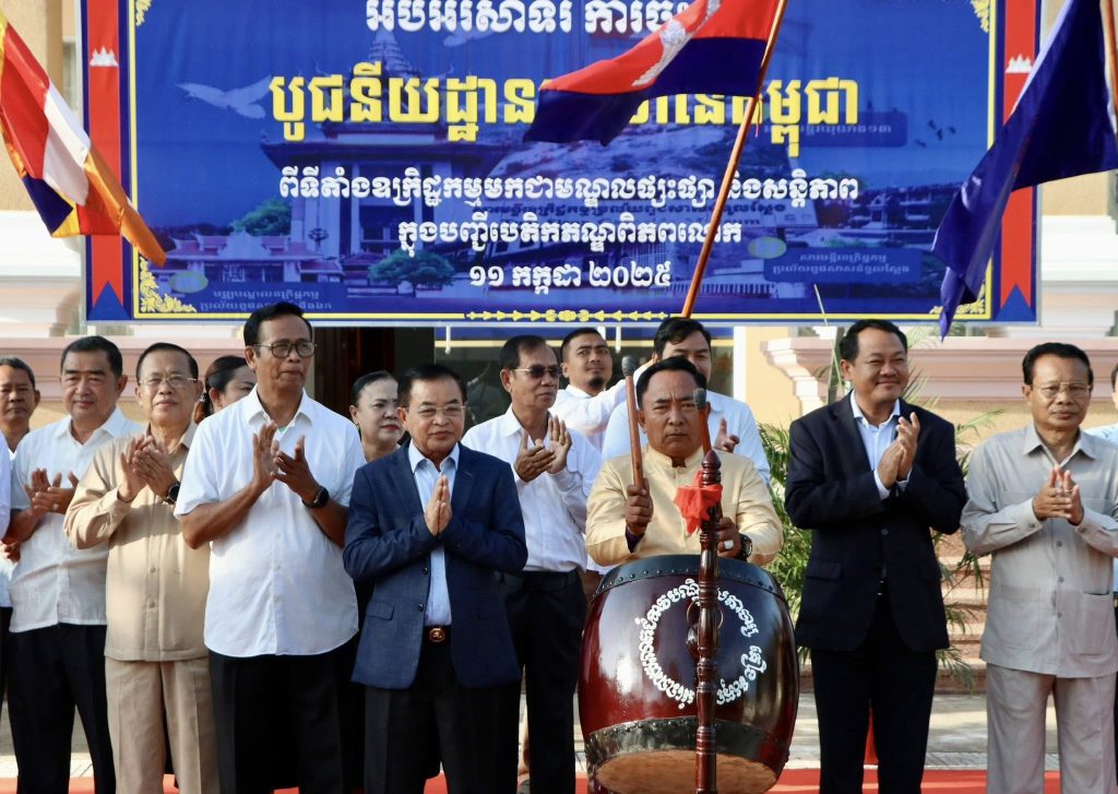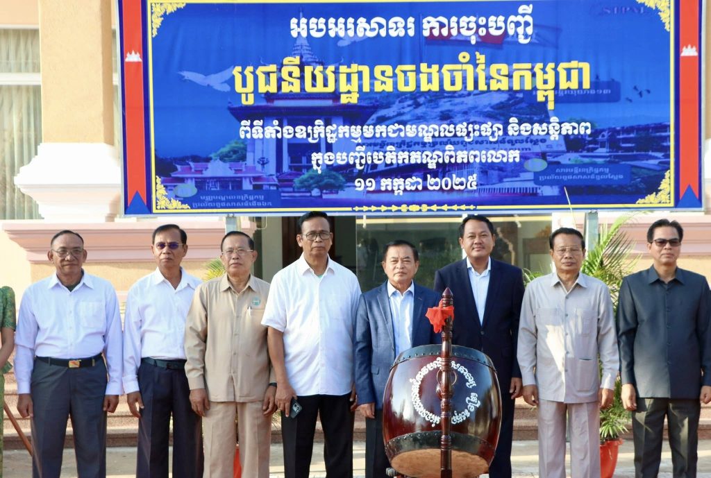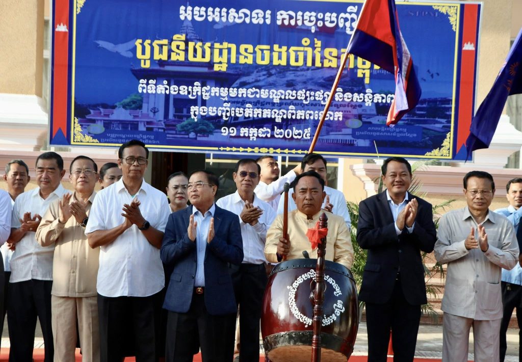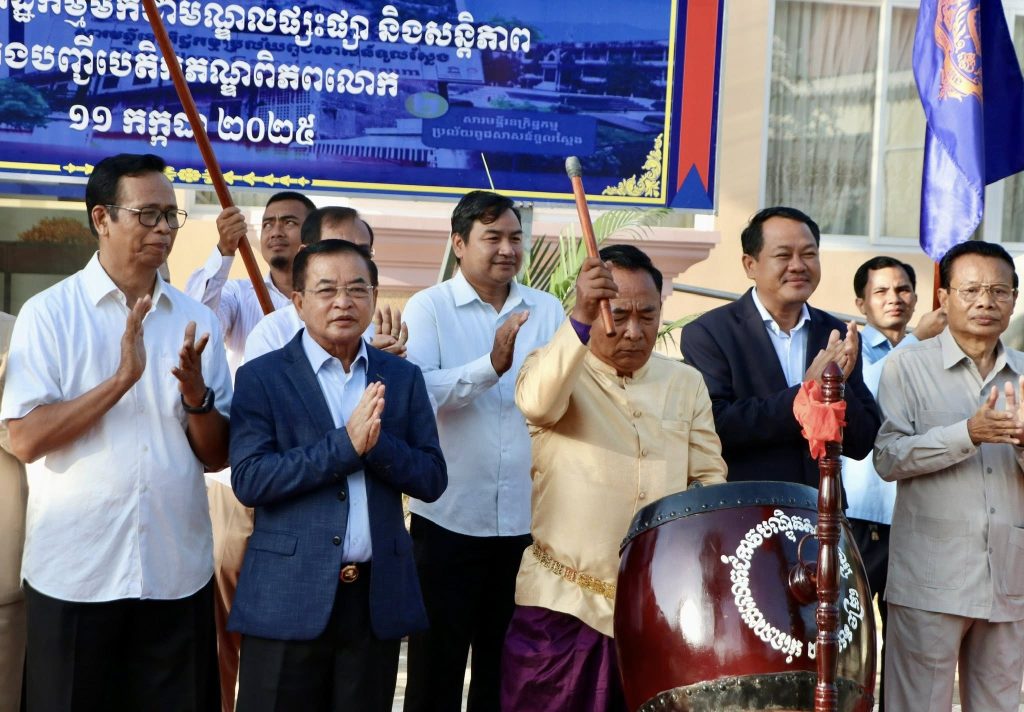 នាវេលាម៉ោង ៧:០០ ព្រឹកថ្ងៃទី១៣ ខែកក្កដា ឆ្នាំ២០២៥នេះ នៅបរិវេណសាលាខេត្ត ឯកឧត្តម ម៉ែន វិបុល ប្រធានក្រុមប្រឹក្សាខេត្តស្វាយរៀង និងលោក ហែម ពិសិដ្ឋ លោក ម៉ែន កល្យាណ អភិបាលរងខេត្ត តំណាងឯកឧត្តម ប៉េង ពោធិ៍សា អភិបាលខេត្ត បានអញ្ជេីញជាអធិបតីក្នុងពិធីទូងស្គរ អបអរសាទរការចុះបូជនីយដ្ឋានចងចាំនៃកម្ពុជា ទីតាំងឧក្រិដ្ឋកម្មមកជាមណ្ឌលផ្សះផ្សា និងសន្តិភាព ក្នុងបញ្ជីបេតិកភណ្ឌពិភពលោក !