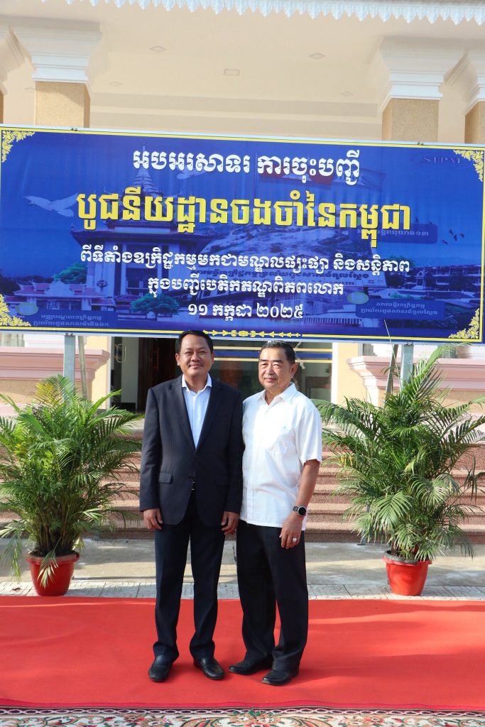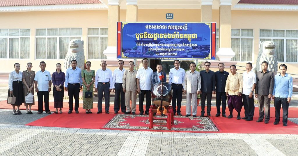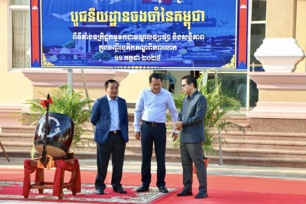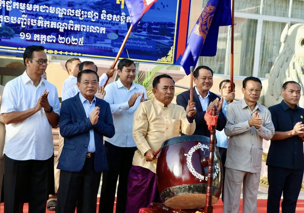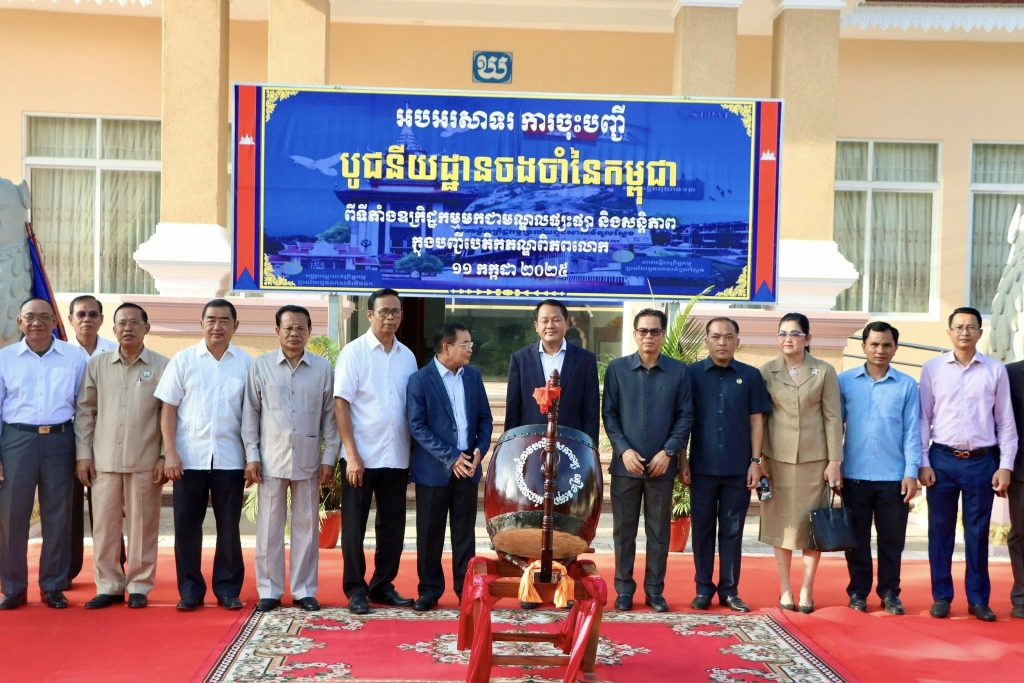 នាវេលាម៉ោង ៧:០០ ព្រឹកថ្ងៃទី១៣ ខែកក្កដា ឆ្នាំ២០២៥នេះ នៅបរិវេណសាលាខេត្ត ឯកឧត្តម ម៉ែន វិបុល ប្រធានក្រុមប្រឹក្សាខេត្តស្វាយរៀង និងលោក ហែម ពិសិដ្ឋ លោក ម៉ែន កល្យាណ អភិបាលរងខេត្ត តំណាងឯកឧត្តម ប៉េង ពោធិ៍សា អភិបាលខេត្ត បានអញ្ជេីញជាអធិបតីក្នុងពិធីទូងស្គរ អបអរសាទរការចុះបូជនីយដ្ឋានចងចាំនៃកម្ពុជា ទីតាំងឧក្រិដ្ឋកម្មមកជាមណ្ឌលផ្សះផ្សា និងសន្តិភាព ក្នុងបញ្ជីបេតិកភណ្ឌពិភពលោក !