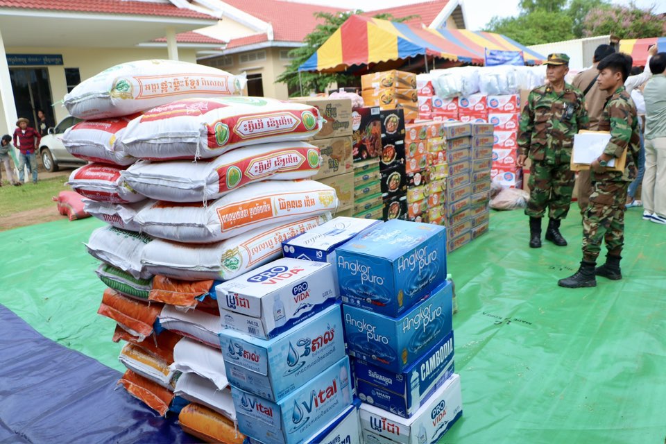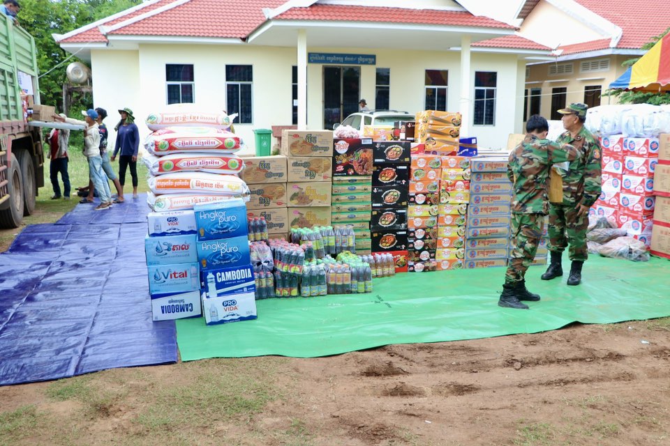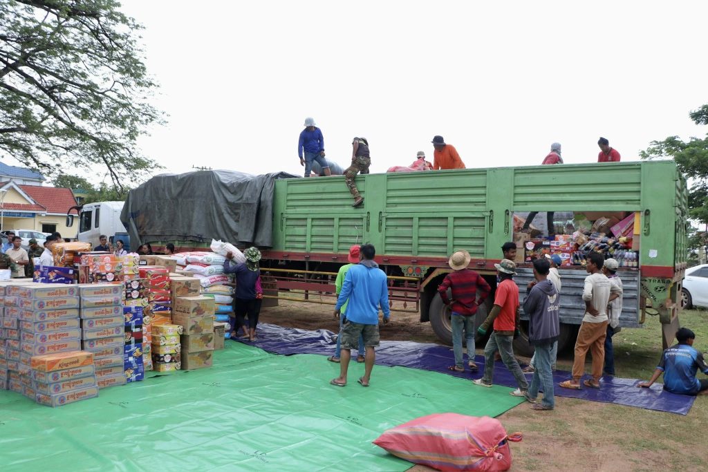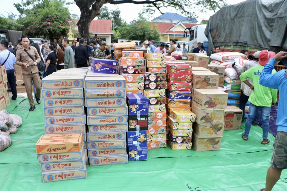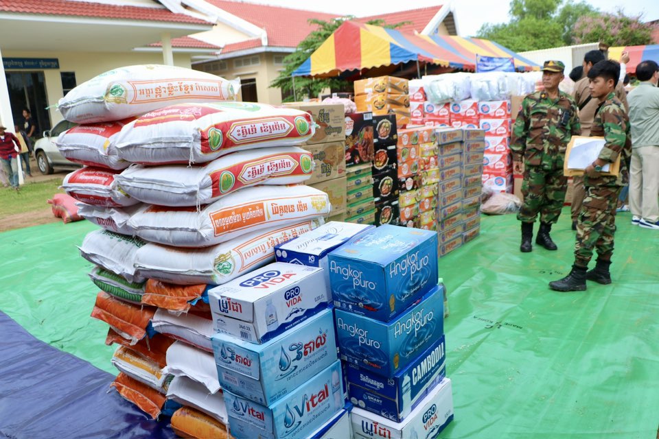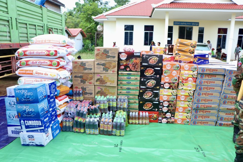 អង្ក ថ្នាំពេទ្យ មី ត្រីខកំប៉ុង ទឹកត្រី ទឹកស៊ីអៀវ ទឹកសុទ្ធ ទឹកក្រូច មី ភួយមុង សំលៀកបំពាក់ អំបុក សម្ភារប្រើប្រាស់ផ្សេងៗជាច្រេីនទៀត និងថវិកាផងដែរ។