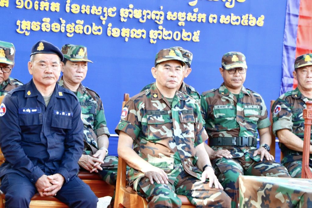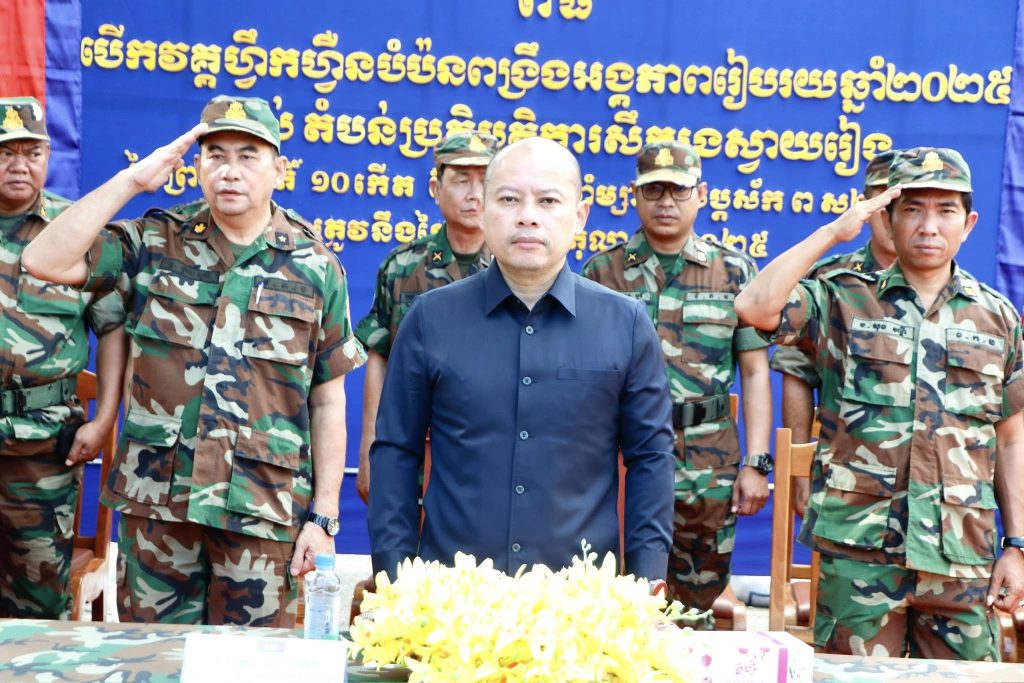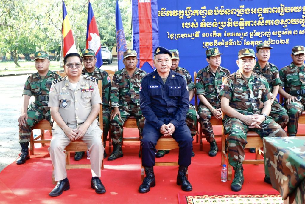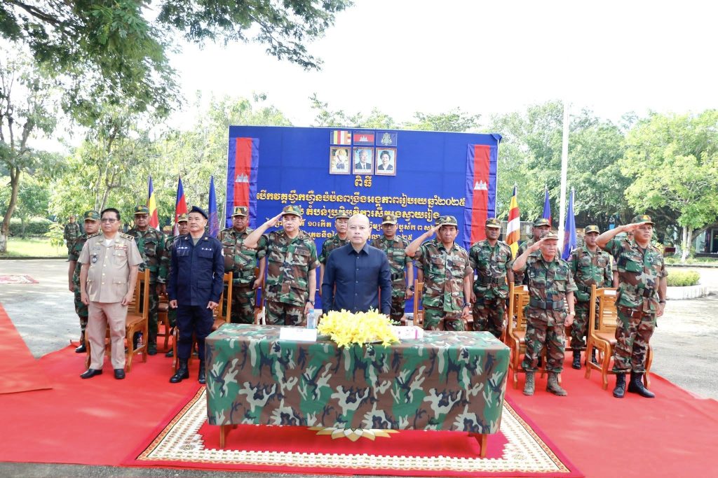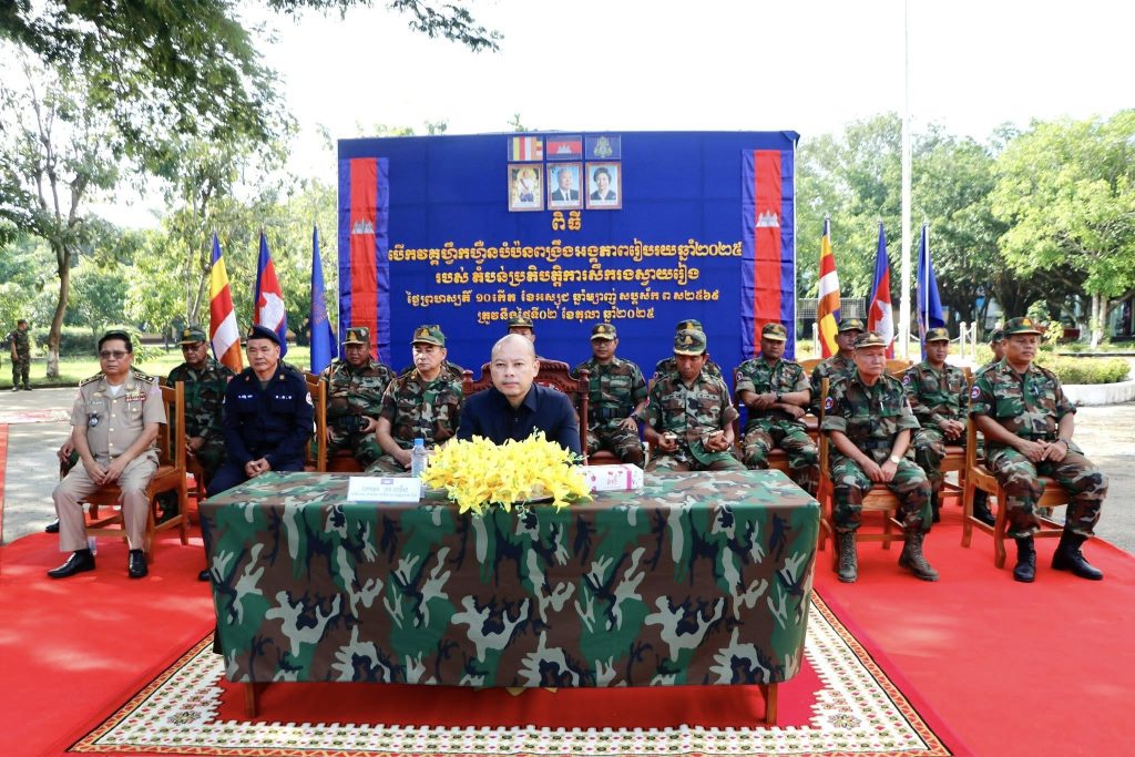 នាព្រឹកថ្ងៃទី០២ ខែតុលា ឆ្នាំ២០២៥នេះ ឯកឧត្តម ប៉េង ពោធិ៍សា អភិបាល នៃគណៈអភិបាលខេត្តស្វាយរៀង និងជាប្រធានគណៈបញ្ជាការឯកភាពរដ្ឋបាលខេត្ត បានអញ្ជេីញជាអធិបតីក្នុងពិធីបើកវគ្គហ្វឹកហ្វឺនបំប៉នពង្រឹងអង្គភាពលំហាត់របៀប បច្ចេកទេសថ្មើរជើង យុទ្ធវិធីថ្មើរជើង និងអប់រំចិត្តសាស្ត្រ ស្ថិតនៅទីបញ្ជាការដ្ឋានតំបន់ប្រតិបត្តិការសឹករងខេត្ត។